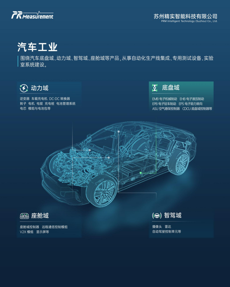 近年来,苏州精实深耕汽车行业,围绕底盘域、动力域、智驾域、座舱域四大核心场景,提供自动化生产线集成、专用测试设备研发及实验室建设,打造从实验室智能化到产线智能化的全生命周期装备与服务体系。